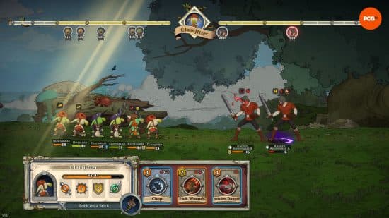 Ορισμένες κινήσεις και εφέ κατάστασης ελέγχονται από τυχαίες πιθανότητες και ποσοστά, αλλά το Goblin Stone δεν έχει να κάνει με το να ρίχνεις τα ζάρια και να ελπίζεις σε διπλά εξάρια, είναι να μετράς φύλλα και να στοιβάζεις την τράπουλα υπέρ σου σε κάθε γύρο. Για να συνεχιστεί η αναλογία του παιχνιδιού, φανταστείτε εάν, αντί να σκέφτεστε μόνο μπροστά στο σκάκι, οι κινήσεις σας θα μπορούσαν επίσης να υπαγορεύουν ποια κομμάτια θα μπορούσαν να μετακινήσουν οι αντίπαλοί σας και πού. Αυτός είναι ο βασικός βρόχος μάχης του Goblin Stone και είναι πραγματικά έξυπνο.