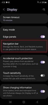 επιλογή επιστροφής στις χειρονομίες πλοήγησης της Samsung.