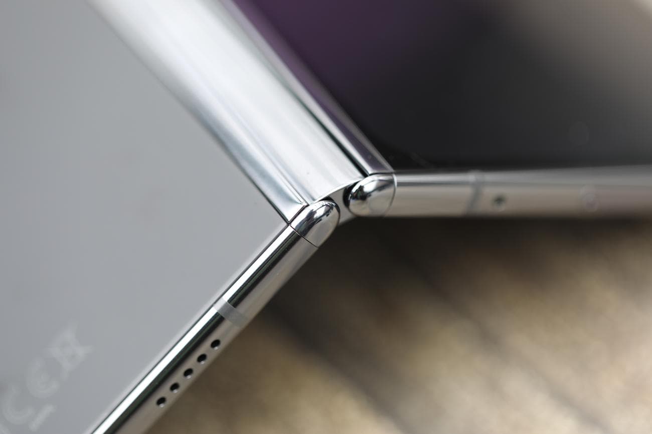 λίγο μετά την ανακοίνωση. «Έτσι, με τον μεντεσέ μας, μετακινήσαμε αυτά τα εξαρτήματα μεντεσέδων εξ ολοκλήρου στα άκρα της συσκευής, έξω από κάτω από την οθόνη, γεγονός που την κάνει πολύ πιο λεπτή». Ο σχεδιασμός επιτρέπει μια πιο λεπτή σχεδίαση όταν ξεδιπλώνεται, χωρίς να διακόπτεται η εσωτερική οθόνη.
