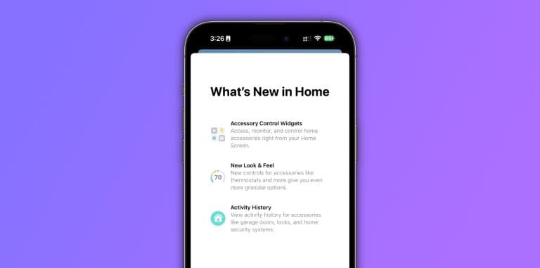 σημείωσε ότι η εφαρμογή Home φέρνει ένα νέο banner όταν ανοίγετε την εφαρμογή για πρώτη φορά σε έκδοση beta 3. Λέει ότι μπορείτε πλέον να έχετε πρόσβαση, να παρακολουθείτε και να ελέγχετε αξεσουάρ σπιτιού από τα γραφικά στοιχεία της αρχικής οθόνης σας, ότι υπάρχουν νέα στοιχεία ελέγχου για αξεσουάρ όπως θερμοστάτες και ότι μπορείτε να δείτε το ιστορικό δραστηριοτήτων για αξεσουάρ όπως γκαραζόπορτες, κλειδαριές και συστήματα ασφαλείας σπιτιού.