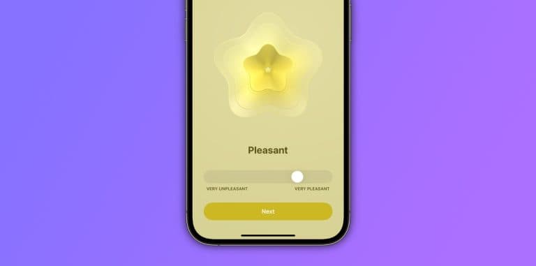 αυτί. Η προσθήκη του πώς νιώθετε αυτή τη στιγμή ή συνολικά κατά τη διάρκεια της ημέρας έχει καλύτερα κινούμενα σχέδια, από βαθύ μοβ σε κυανό και πολύ πορτοκαλί. Το κουμπί «Επόμενο» αλλάζει επίσης ανάλογα.