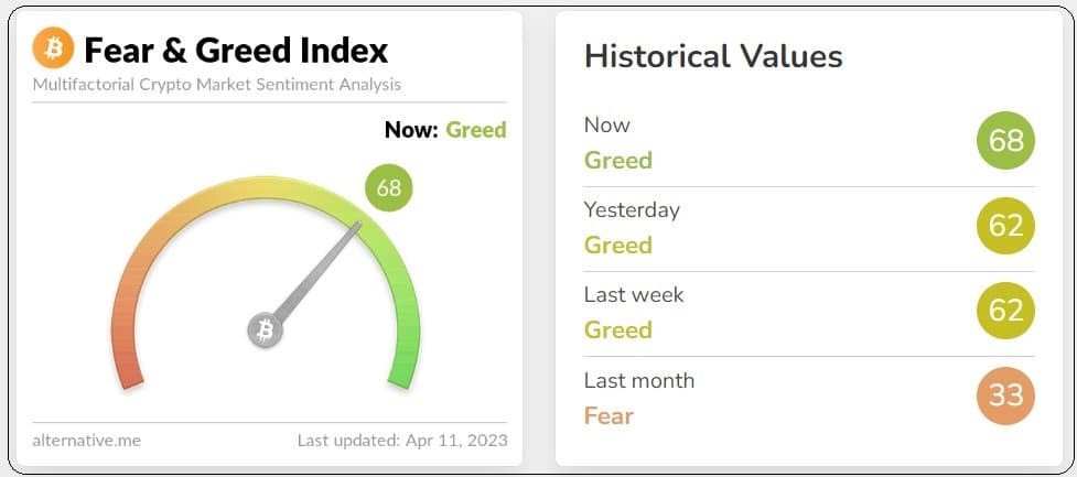 , ο οποίος υπολογίζοντας διάφορες παραμέτρους, παρέχει μια ένδειξη για το πόσο φοβισμένοι ή ενθουσιασμένοι είναι οι επενδυτές. Όπως βλέπουμε, έχει προσεγγίσει το πράσινο επίπεδο, της ευφορίας. Η βαθμολογία του με άριστα το 100 είναι 69. Σε διαμετρικά αντίθετο σημείο όπου βρισκόταν πριν από ένα μήνα. Τότε που