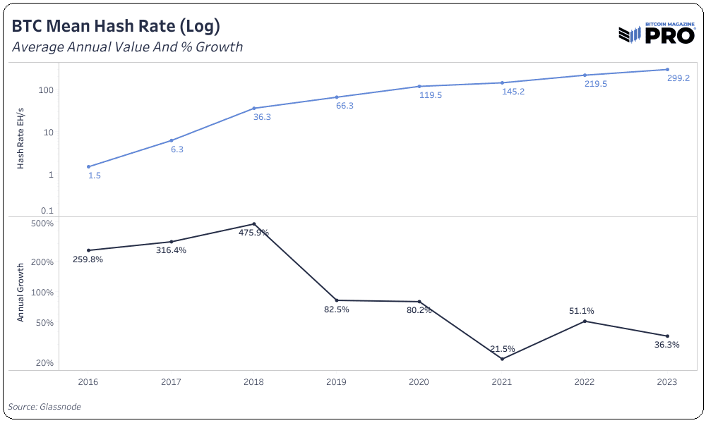 , παρατηρούμε πως παρά την ανάκαμψη της τιμής του Bitcoin και τις ισχυρές επιδόσεις τους τελευταίους μήνες στις μετοχές εξόρυξης, οι τιμές ASIC παρέμειναν χαμηλά. Η αυξανόμενη ισοτιμία κατακερματισμού άσκησε πρόσθετη πίεση στην αγορά ASIC. Τόσο σε όρους Bitcoin όσο και δολαρίου, η τιμή τους έχει ουσιαστικά ισοπεδωθεί από το φθινόπωρο του 2022.