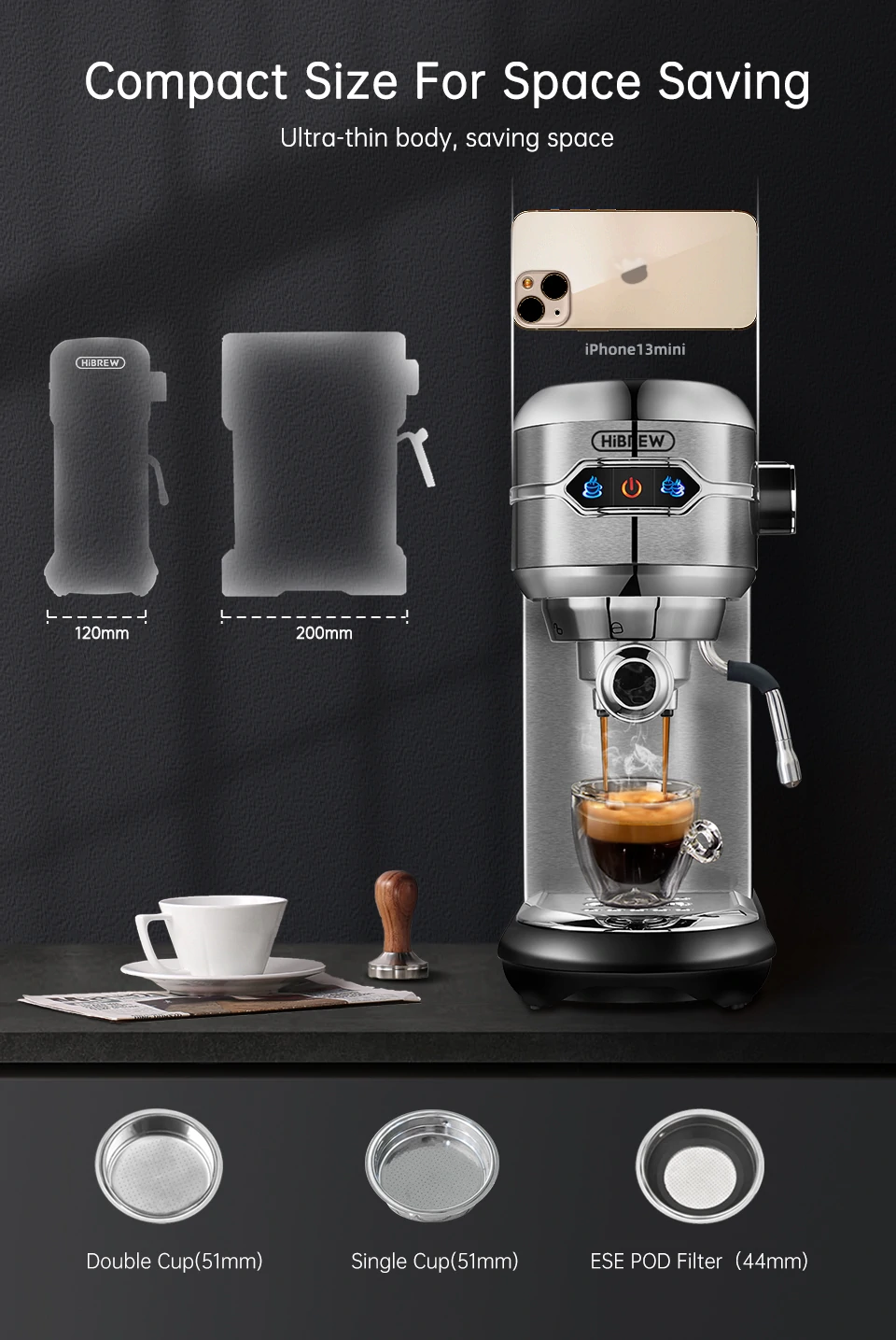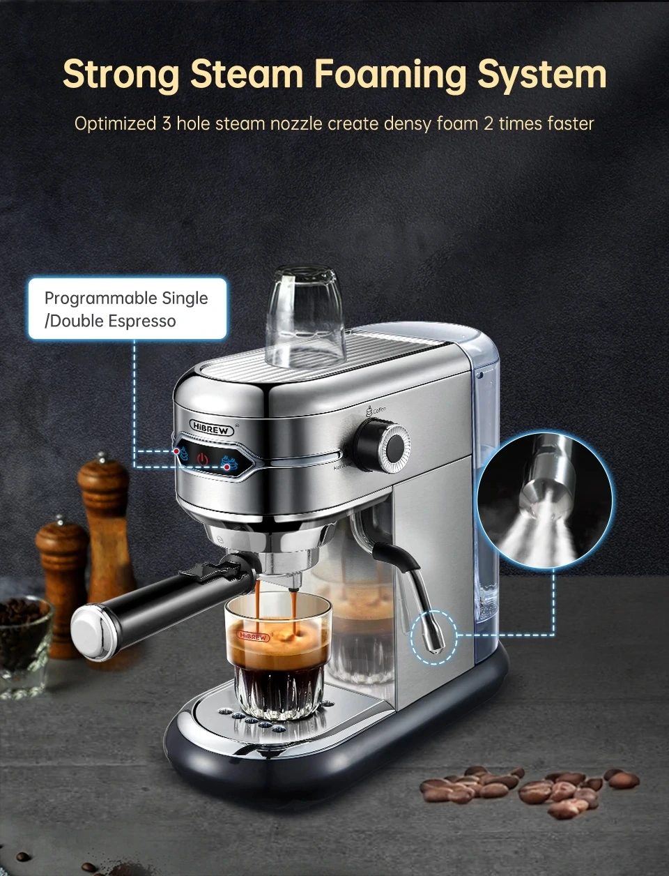 HiBREW H11 : Ημιαυτόματη εσπρεσιέρα, για χύμα καφέ και ESE Pods και πιπιρόλι ατμού.