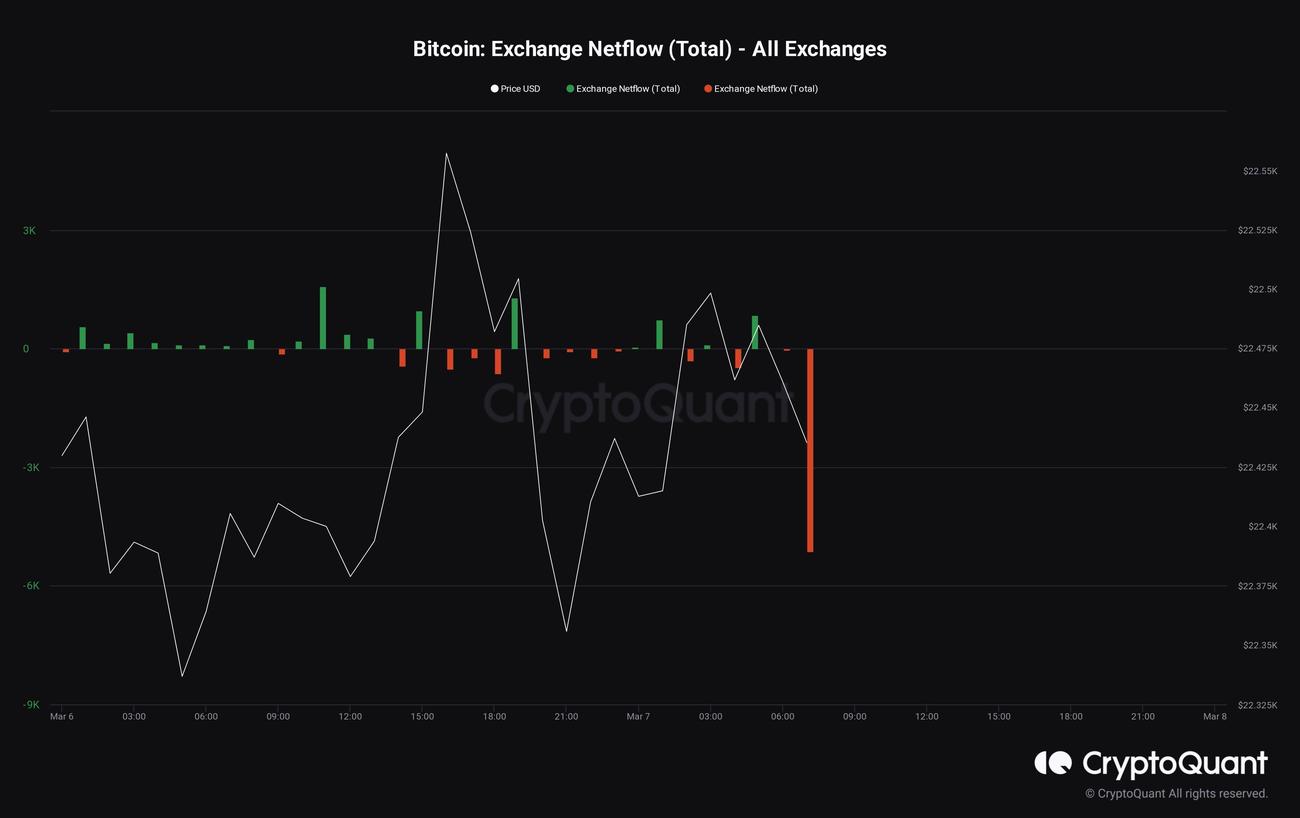 Από την άλλη, τα δεδομένα από την εταιρεία ερευνών CryptoQuant είναι μάλλον ενθαρρυντικά. Κατ’ αρχάς σημειώθηκε εκροή σημαντικής ποσότητας Bitcoin από τα