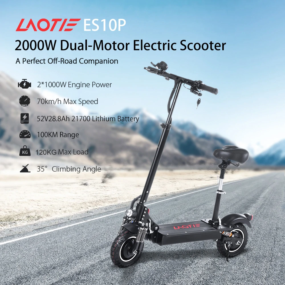 Το LAOTIE ES10P είναι ένα πανίσχυρο πατίνι, με διπλό μοτέρ, συνολικής ισχύς 2000W, και 10″ off road ελαστικά.