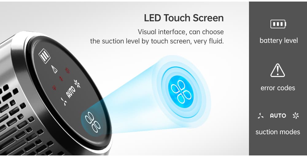 Η Proscenic P11 έχει αυτόματη αναγνώριση χαλιών, και Auto Boost στην απορρόφηση σε αυτές τις περιπτώσεις, και έχει ένα “κέντρο ελέγχου” στο χερούλι του , που σας δίνει πληροφορίες για τη στάθμη της μπαταρίας, την επιλεγμένη ταχύτητα, και έχει και τρία λαμπάκια σφαλμάτων, που σας ειδοποιούν για γεμάτο κάδο, ή σκουπίδια στο σημείο εισόδου.