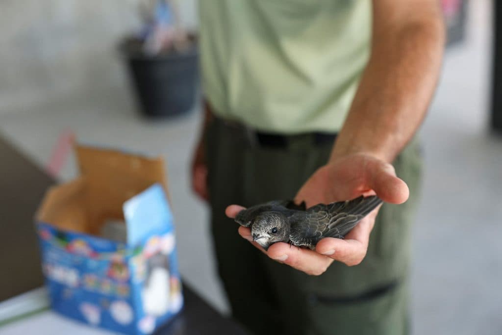 O καύσωνας απειλεί και τα ζώα: εθελοντής σε κέντρο περίθαλψης στη Μαδρίτη φροντίζει εξαντλημένο χελιδόνι (Reuters)
