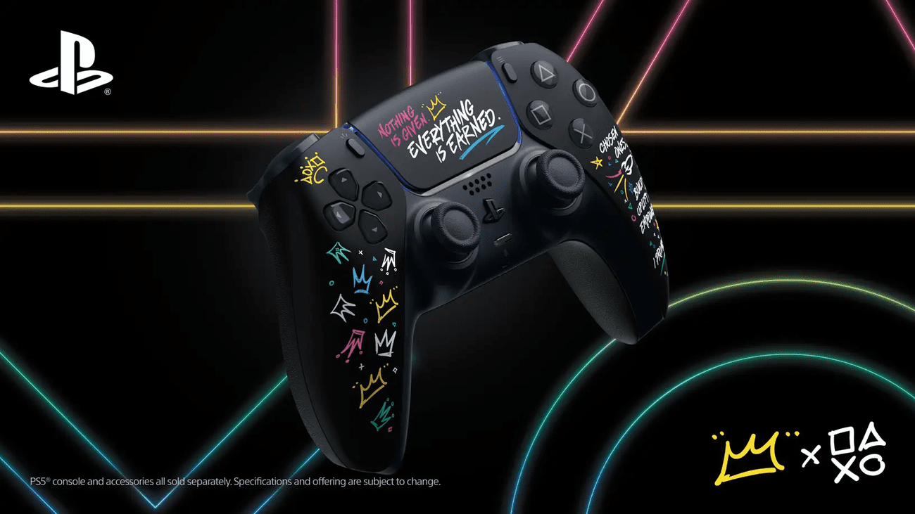 Αξίζει να αναφέρουμε πως τόσο το DualSense αλλά και το limited edition κάλυμμα για το PS5 στα σχέδια του ΛεΜπρόν φέρουν τη φράση