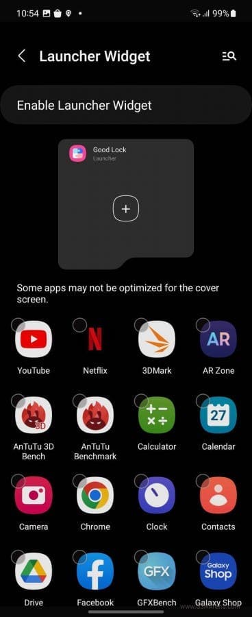 Για να λειτουργήσουν οι άλλες εφαρμογές στην εξωτερική οθόνη θα χρειαστεί να εγκαταστήσετε το Good Lock από το κατάστημα Galaxy της Samsung. Είναι ένα προηγμένο εργαλείο που ξεκλειδώνει προηγμένες λειτουργίες σε τηλέφωνα Galaxy μέσω μονάδων που εγκαθίστανται ανεξάρτητα. Κάνει εντυπωσιακά πράγματα με το Galaxy σας, αλλά δεν είναι διαθέσιμο σε πολλές χώρες (γι’ αυτό μπορεί να μην το έχετε ακούσει). Εάν έχετε πρόσβαση στο Good Lock, πρέπει να το εγκαταστήσετε από το Galaxy Store και, στη συνέχεια, να αναζητήσετε στο Good Lock τη λειτουργική μονάδα ‘Multistar’. Εγκαταστήστε το και, στη συνέχεια, βρείτε την καρτέλα «Life Up» και μέσα σε αυτήν, μεταβείτε στο μενού «I ♡ Galaxy Foldable». Μέσα θα δείτε το “Γραφικό στοιχείο εκκίνησης”, πατήστε το και ενεργοποιήστε όλες τις εφαρμογές που θέλετε να χρησιμοποιήσετε στην εξωτερική οθόνη.