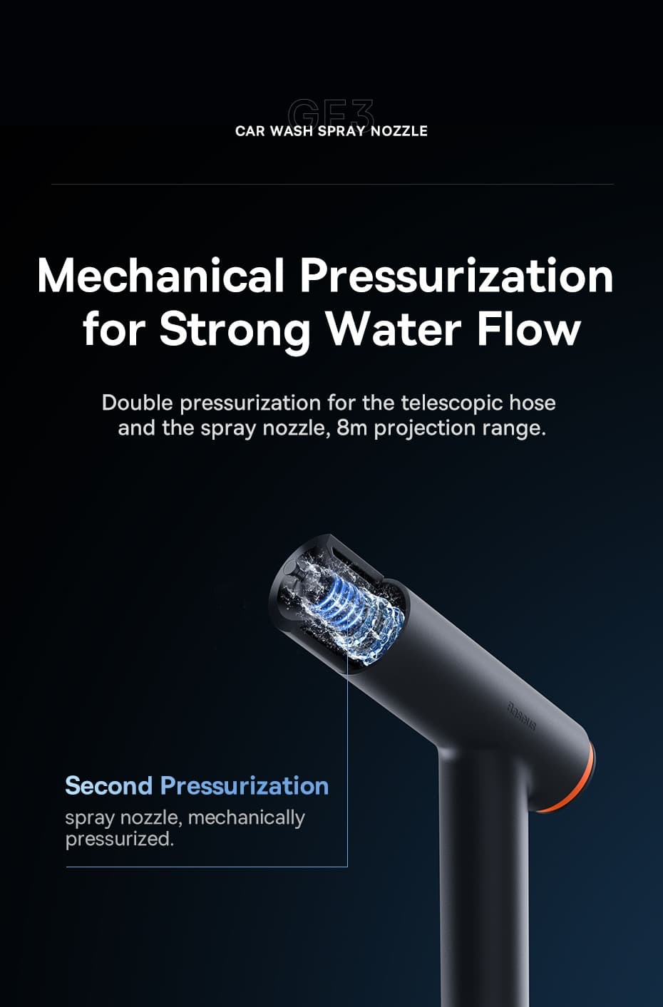 Το ζευγάρι λάστιχου-πιστολιού της Baseus, μπορεί να μην έχει μπαταρίες ή ρεύμα, αλλα είναι σχεδιασμένα για να συνεργάζονται μεταξύ τους και να ανεβάζουν δραματικά την πίεση του νερού στην άκρη του πιστολιού.