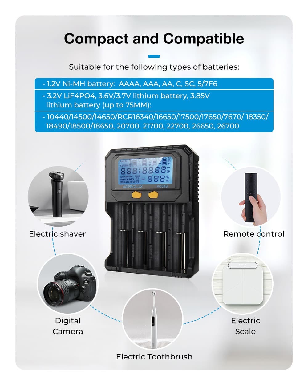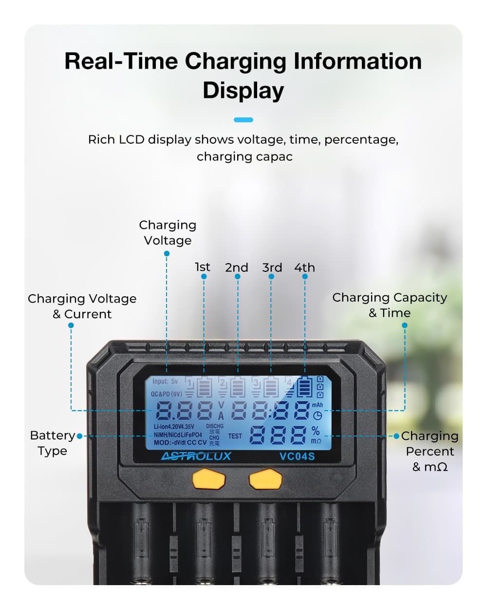 Astrolux VC04S : Τετραθέσιος πολυφορτιστής μπαταριών συμβατός με πλήθος μπαταριών στα 16.6€!