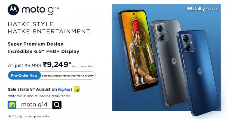 50MP (0,64μm εγγενή pixel, 1,28μm μετά τη σύνδεση). Υπάρχει επίσης μια κάμερα selfie 8MP στο μπροστινό μέρος (1,12μm), τόσο αυτή όσο και η πίσω κάμερα μπορούν να εγγράψουν βίντεο 1080p στα 30fps. Μερικά άλλα πράγματα που αξίζει να αναφέρουμε είναι η αντίσταση στη σκόνη και το νερό IP52 και ο αναγνώστης δακτυλικών αποτυπωμάτων που είναι τοποθετημένος στο πλάι. Επίσης, το G14 κατασκευάζεται στην Ινδία. Υπάρχουν δύο χρώματα για να διαλέξετε: Sky Blue και Steel Grey. Δύο ακόμη εκδόσεις, Pale Lilac και Butter Cream Vegan Leather, θα κυκλοφορήσουν επίσης σύντομα. Το Motorola Moto G14 είναι σε προπαραγγελία τώρα, μπορείτε να το βρείτε στο Flipkart. Θα κυκλοφορήσει μια εβδομάδα από τώρα, στις 8 Αυγούστου. Η τιμή έχει οριστεί στα 10.000 ₹ (€111).