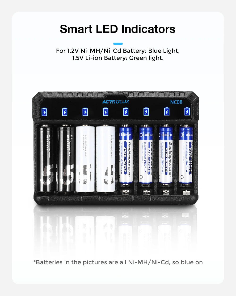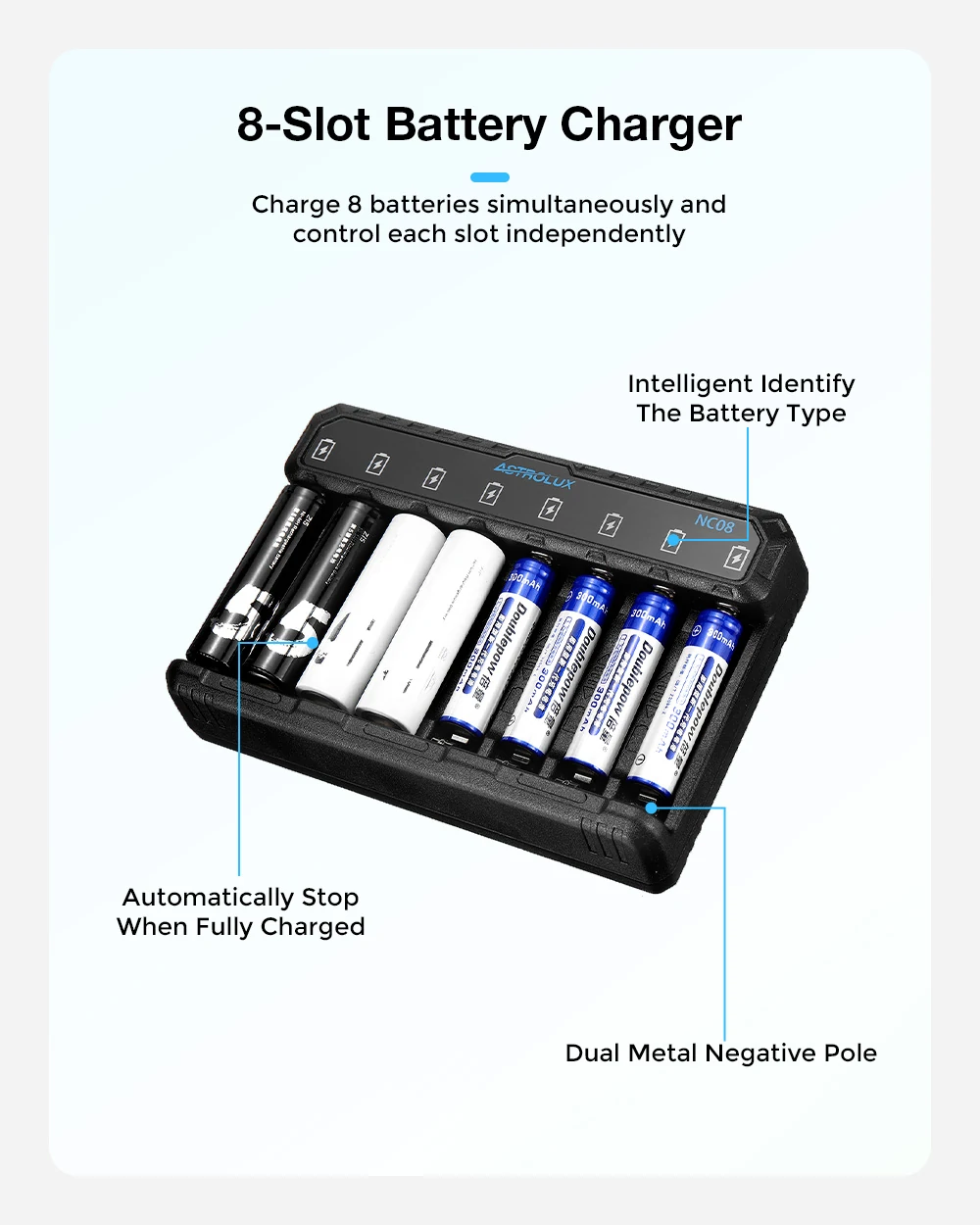 Astrolux NC08 : Οκταθέσιος και πολύ οικονομικός φορτιστής για ΑΑ και AAA μπαταρίες στα 10.5€!