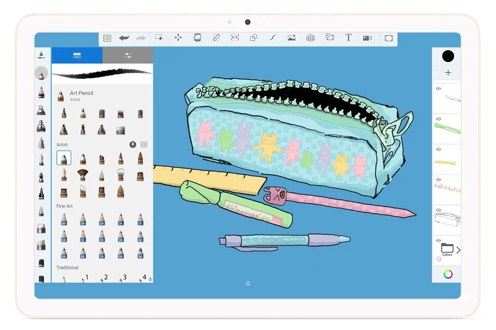 Το όνομά του είναι μια ψηφιακή εφαρμογή (βιβλίο) για σκίτσα, ζωγραφική και τέχνη, που βοηθά τους χρήστες να ολοκληρώσουν το έργο τέχνης τους με πλήρες φινίρισμα. Παρέχει προηγμένη προσαρμογή για πινέλα, χάρακες και πινελιές. Διαθέτει όλα τα χαρακτηριστικά που βοηθούν σε μεγαλύτερη ευελιξία στη δημιουργία και την εξερεύνηση χρωμάτων για να βελτιώσετε την εμπειρία σκίτσου. Σε tablet Android, μπορεί να επιτρέψει στους χρήστες να δημιουργήσουν πιο ακριβή και ακριβή σκίτσα.