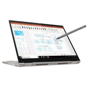 Το… αυτοκρατορικών επιδόσεων ThinkPad X1 Titanium Yoga παρέχει τα οφέλη της Intel Evo vPro πλατφόρμας, χωρίς να απειλεί με εξάρθρωση τον ώμο σας όταν το έχετε αποθηκευμένο στην τσάντα σας! Πρόκειται για μια εξαιρετικά λεπτή και ελαφριά «2-σε-1» συσκευή που ξεχωρίζει για το εμβληματικό titanium design που, ωστόσο, κάτω από το στιβαρό σχεδιαστικό προφίλ κρύβει την πολυμορφική Υoga φύση τού υβριδικού αυτού laptop. Η μετατροπή του ThinkPad X1 Titanium Yoga από φορητό υπολογιστή σε ταμπλέτα γίνεται με μια απλή περιστροφή της 13.5” QHD IPS οθόνης κατά 360 μοίρες, ενώ μπορείτε να κάνετε οποιαδήποτε ενδιάμεση «στάση» εξυπηρετεί τους σκοπούς σας, π.χ. να στερεώσετε τη συσκευή σε tent mode, για να απολαύσετε ένα βίντεο κατά τη διάρκεια μιας πτήσης. Το βάρος δεν ξεπερνά τα 1,35 κιλά και το πάχος περιορίζεται στα 11,5 χιλιοστά. Στην έκδοση που εντοπίσαμε για εσάς, στη θέση του επεξεργαστή συναντάμε τον ιδιαιτέρως ισχυρό Intel Core i7-1160G7, παρέα με 16GB και 1TB SSD.