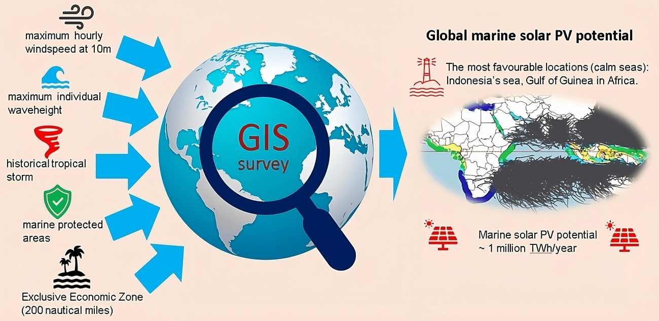 δείχνει πως μόνο στις ακτές της Ινδονησίας, η ηλιακή ενέργεια που μπορεί να παραχθεί αγγίζει τις 35.000 TWh ετησίως, τη στιγμή που σήμερα η παγκόσμια παραγωγή ηλεκτρισμού φτάνει τις 30.000 TWh το χρόνο.