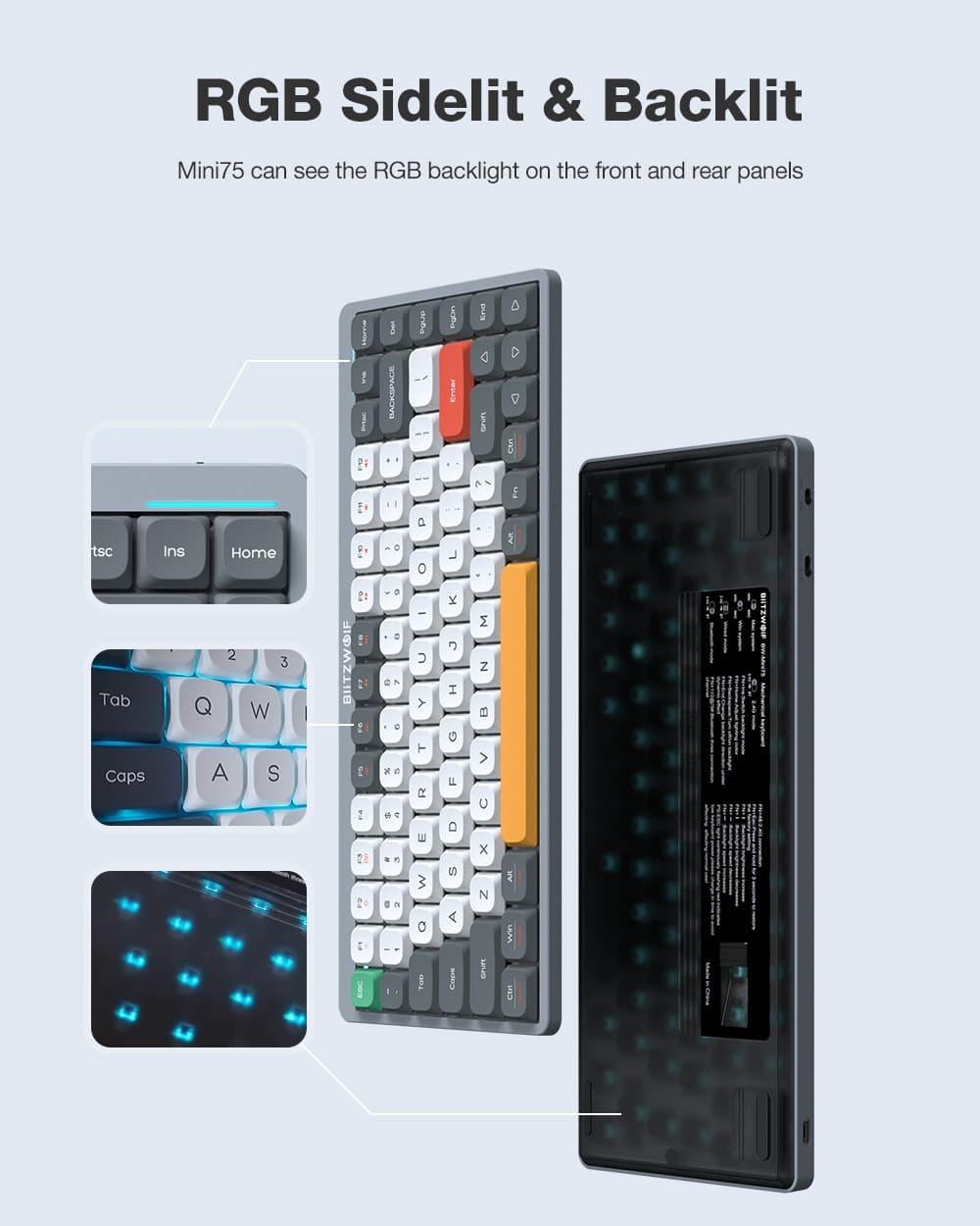 BlitzWolf BW-Mini75 : Low Profile μηχανικό πληκτρολόγιο 84 πλήκτρων, με Hot Swappable διακόπτες και RGB φωτισμό, στα 51.4€!!