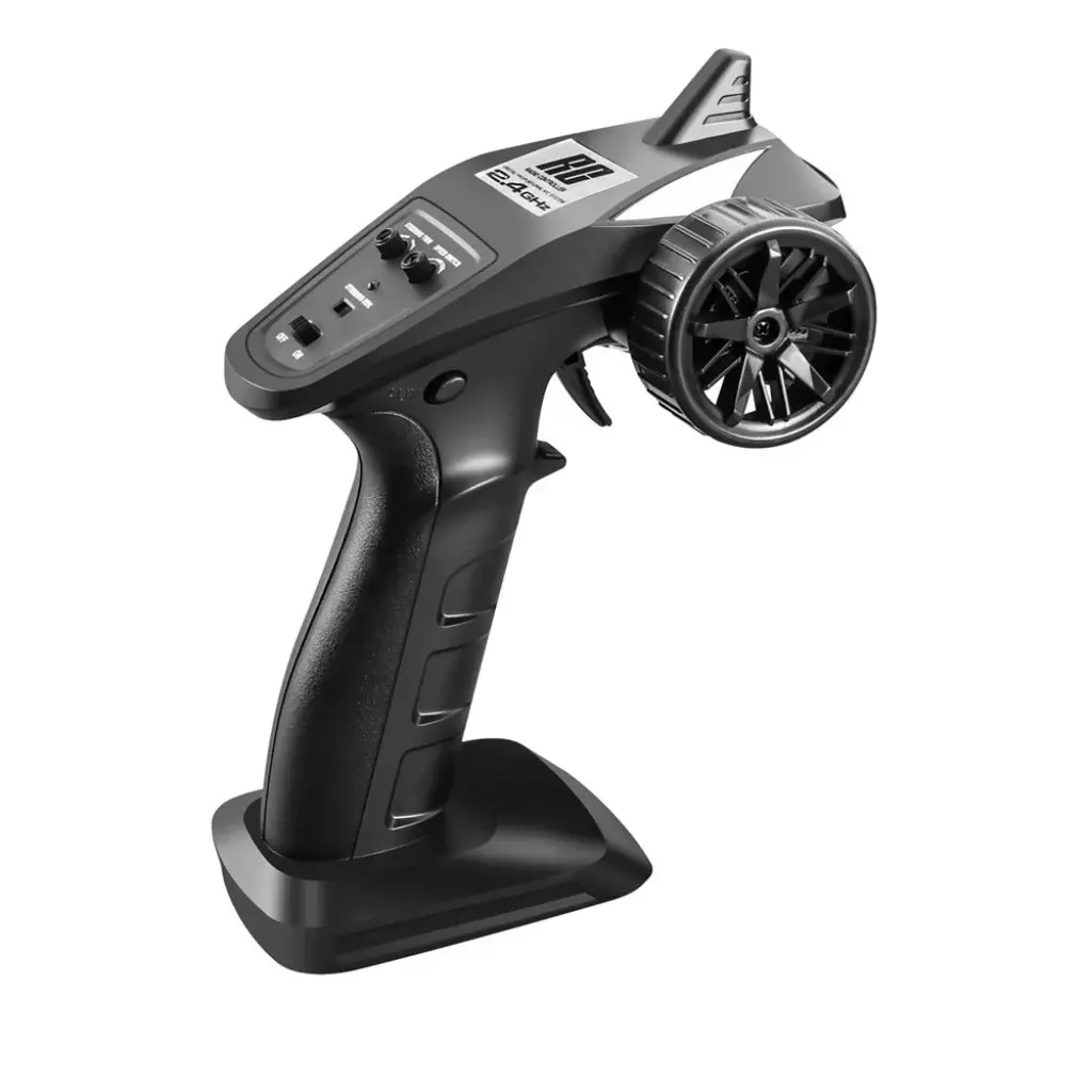 Το χειριστήριο του είναι κλασσικού σχεδίου “πιστόλι με μια ρόδα στο πλάι” που δεν μπορώ να καταλάβω ποιος το σκέφτηκε και γιατί θεωρούν ότι είναι βολικό αυτό το πράγμα. Βέβαια είμαι και άσχετος από RC οπότε, ίσως κάτι να ξέρουν αυτοί παραπάνω.