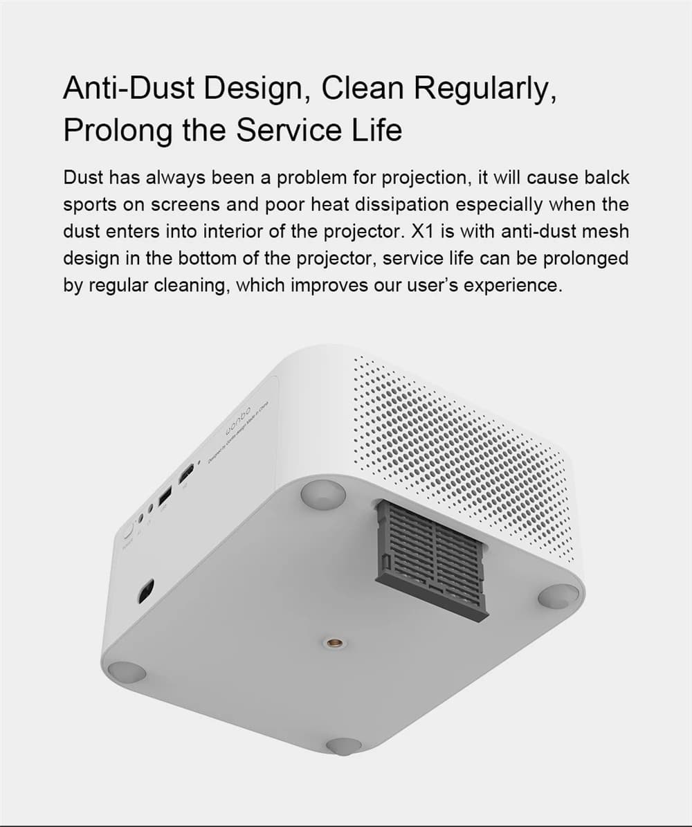 Ο XIAOMI Wanbo X1 είναι ένας νέος προτζέκτορας με διαστάσεις 22 x 18.5 x 8 εκατοστά, και βάρος μόλις 1.23 κιλά, το όπλο του οποίου είναι η LED λάμπα με τρομερή φωτεινότητα για τα λεφτά του, που φτάνει τα 250 ANSI Lumens, που μπορεί να αντέξει μέχρι και 20.000 ώρες πριν κλατάρει.