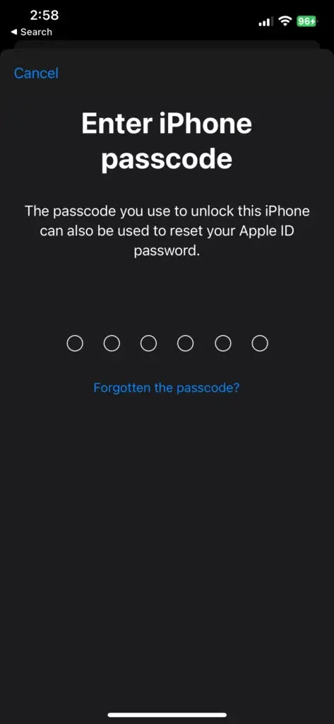 - Στη συνέχεια, όταν σας ζητηθεί, εισαγάγετε τον κωδικό πρόσβασης του iPhone σας.