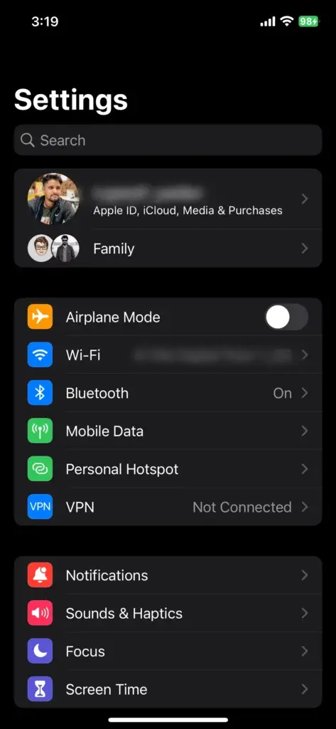 - Αρχικά, ανοίξτε τις Ρυθμίσεις και πατήστε το όνομά σας.